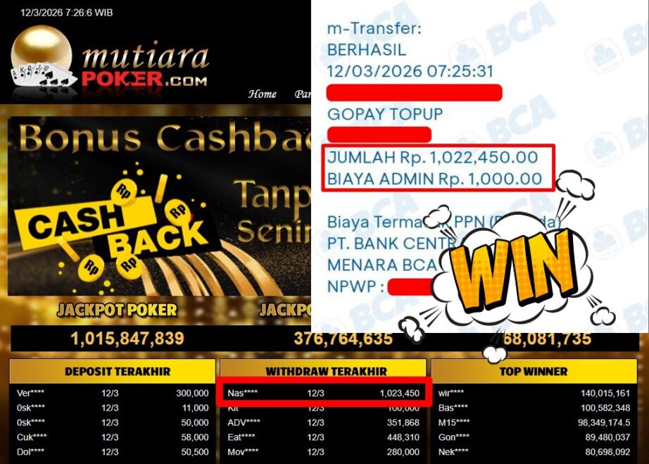 Bukti Withdraw ( 1.023.450,-) Member Setia Mutiarapoker