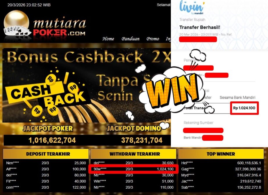 Bukti Withdraw ( 1.024.100,-) Member Setia Mutiarapoker