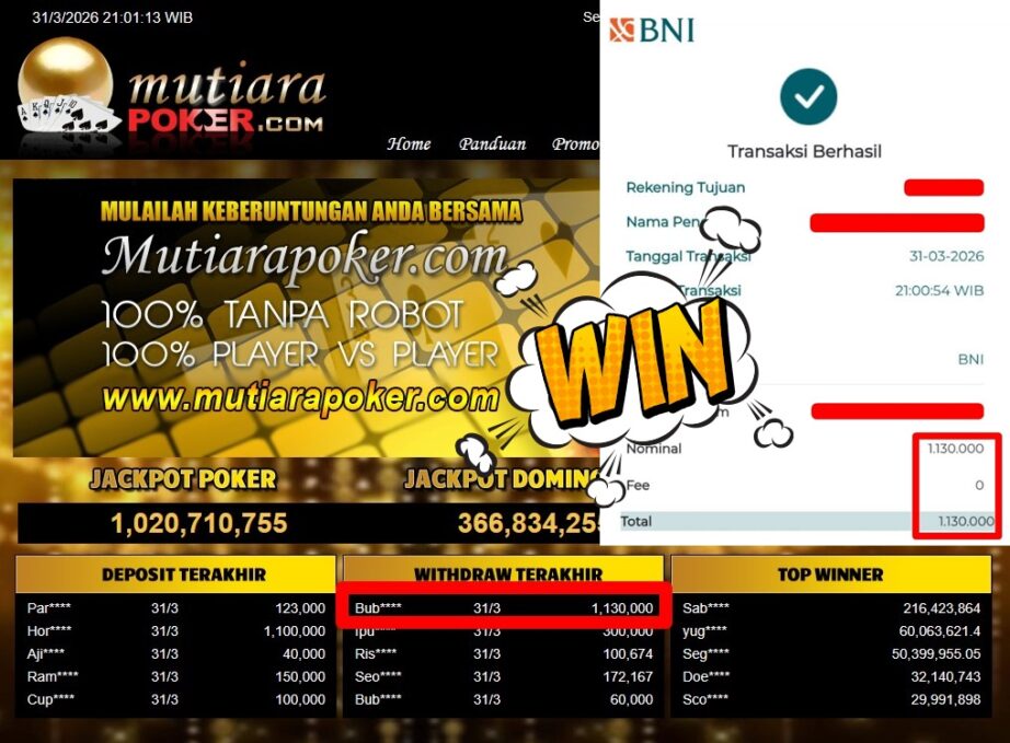 Bukti Withdraw MutiaraPoker