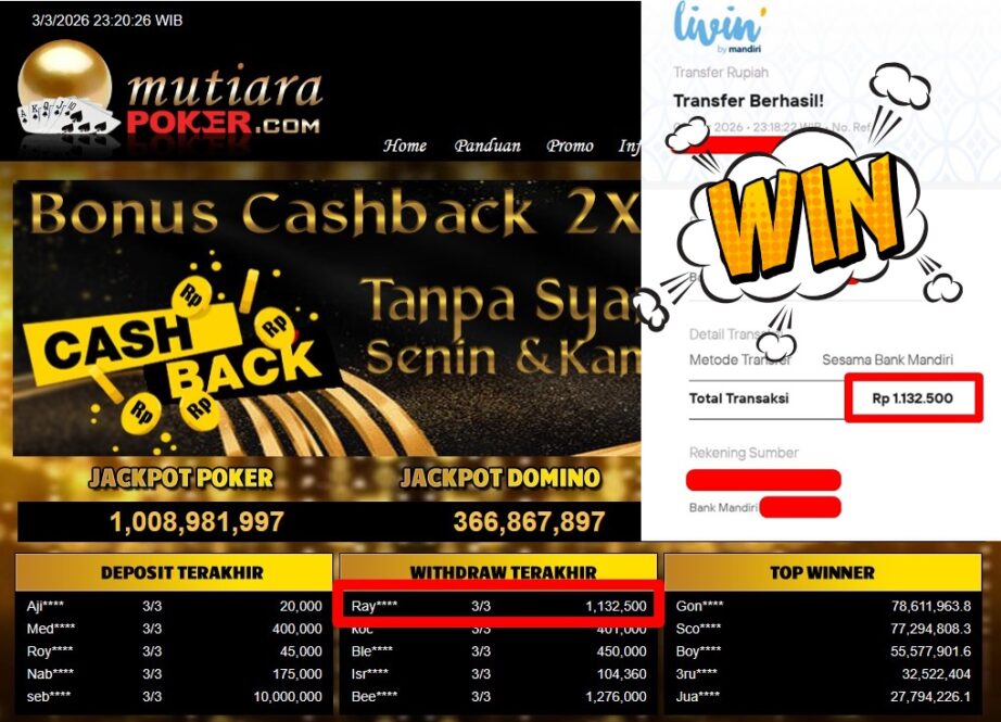 Bukti Withdraw ( 1.132.500,-) Member Setia MutiaraPoker