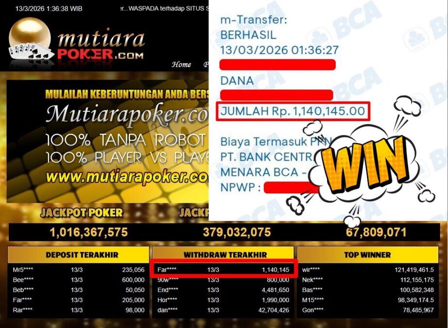 Bukti Withdraw MutiaraPoker