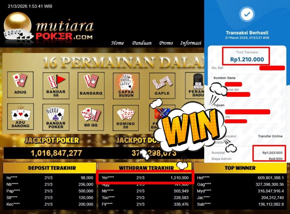 Bukti Withdraw MutiaraPoker
