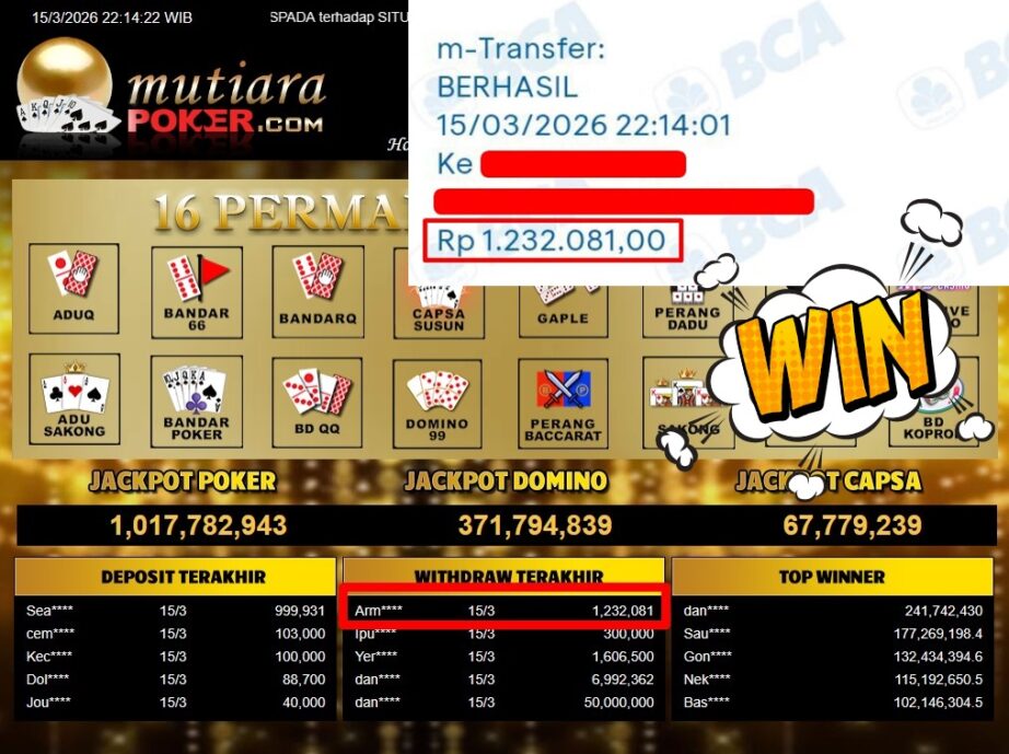Bukti Withdraw MutiaraPoker