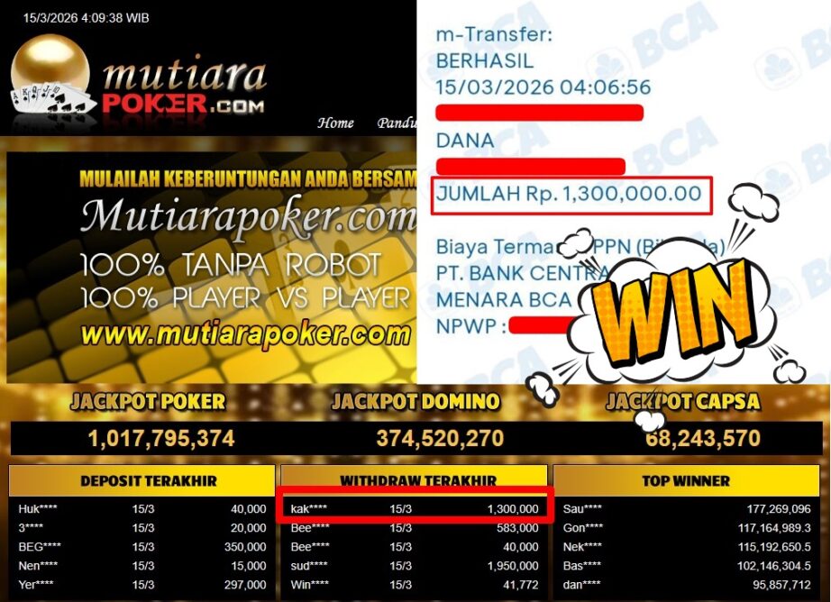 Bukti Withdraw MutiaraPoker