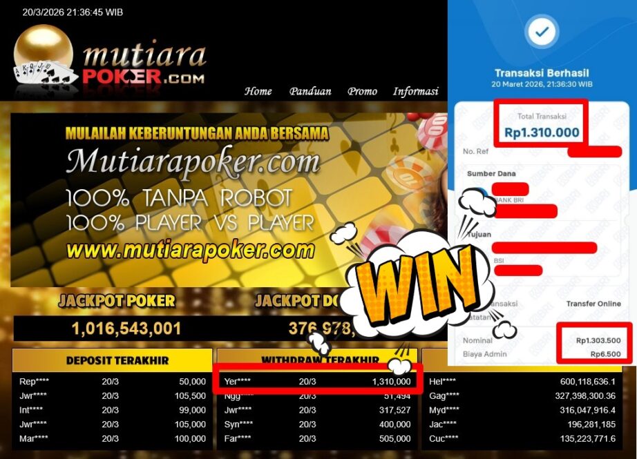 Bukti Withdraw MutiaraPoker