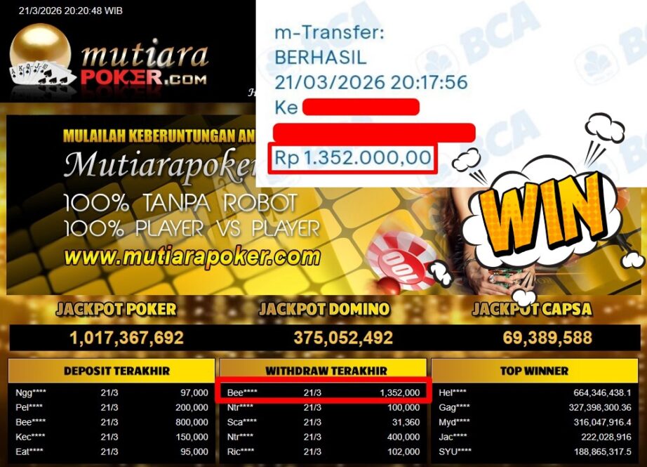 Bukti Withdraw MutiaraPoker