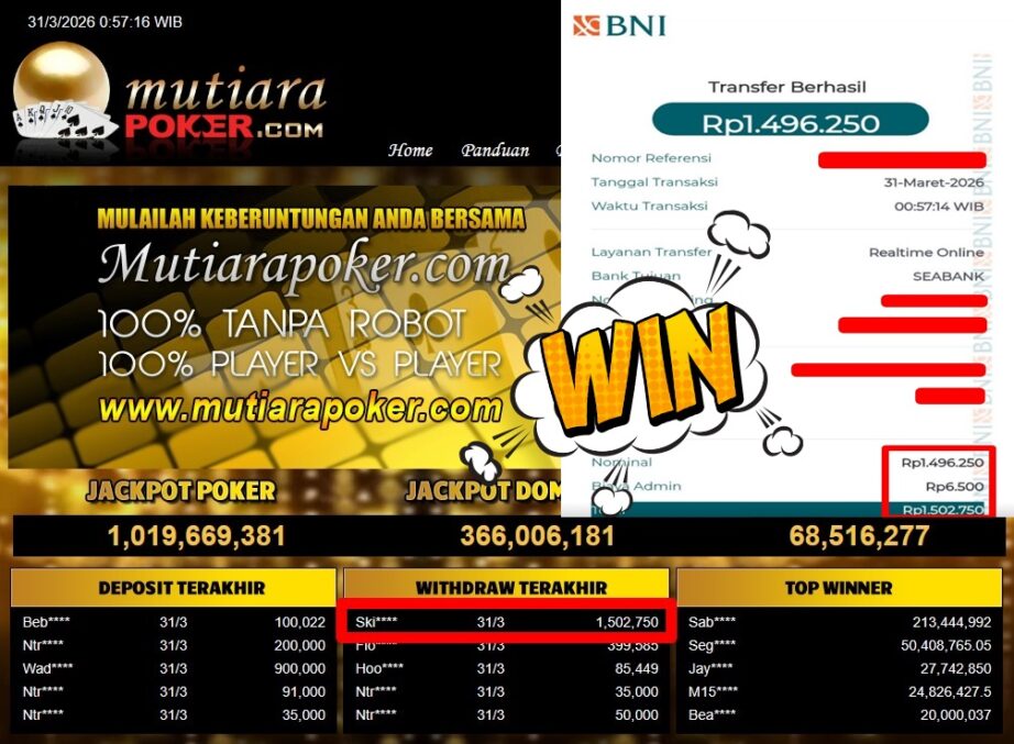 Bukti Withdraw ( 1.502.750,-) Member Setia Mutiarapoker