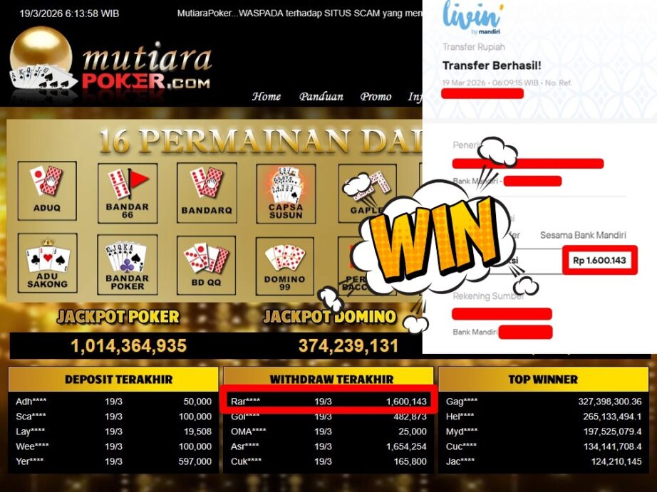 Bukti Withdraw MutiaraPoker