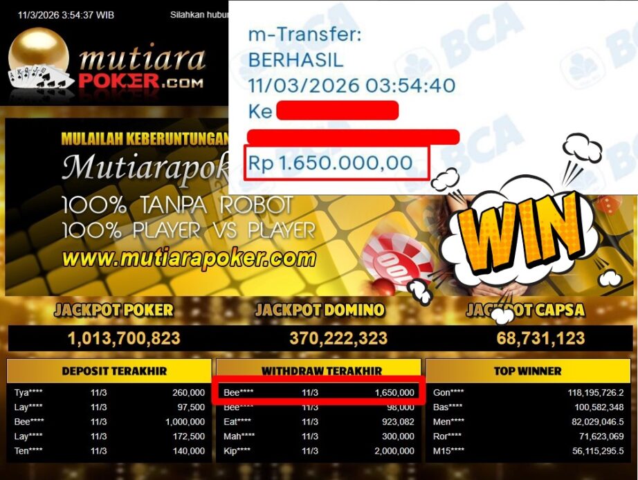 Bukti Withdraw ( 1.650.000,-) Member Setia Mutiarapoker