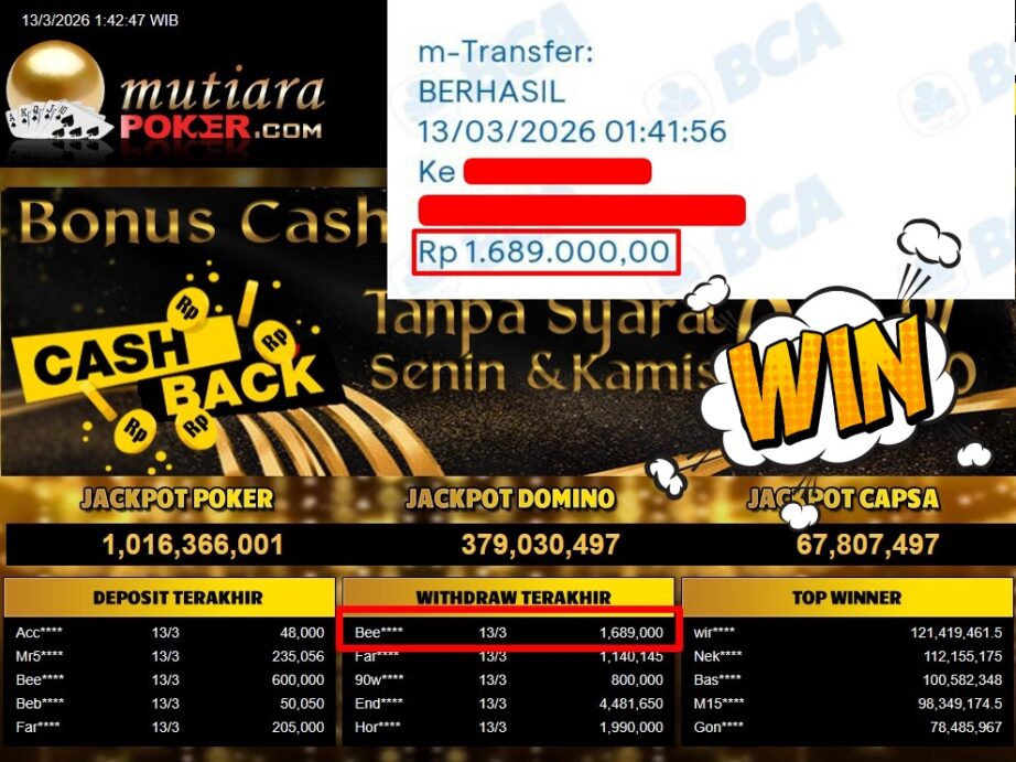 Bukti Withdraw ( 1.689.000,-) Member Setia Mutiarapoker