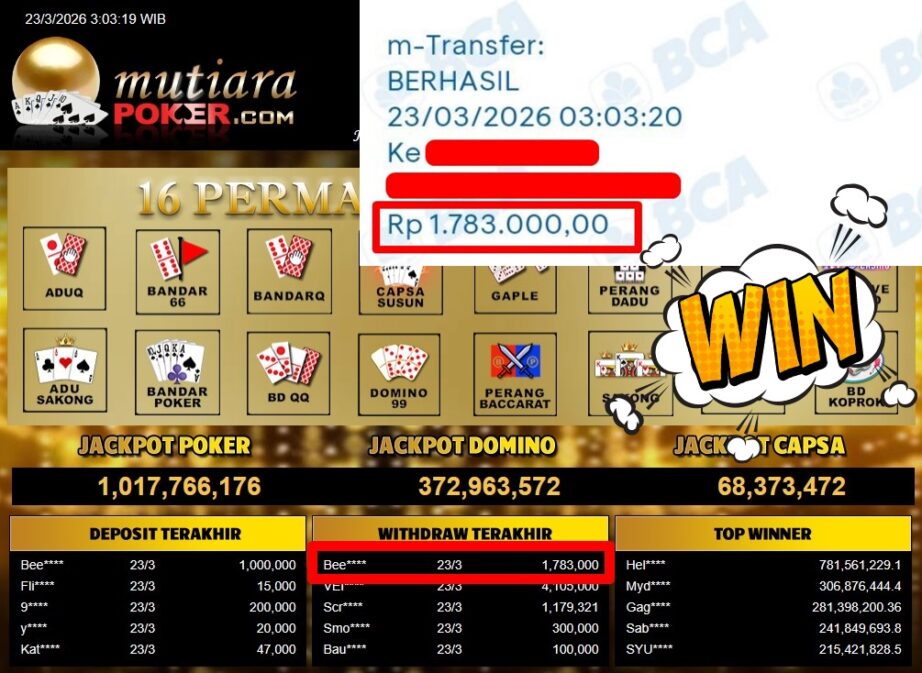 Bukti Withdraw ( 1.783.000,-) Member Setia Mutiarapoker