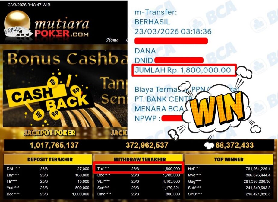 Bukti Withdraw MutiaraPoker