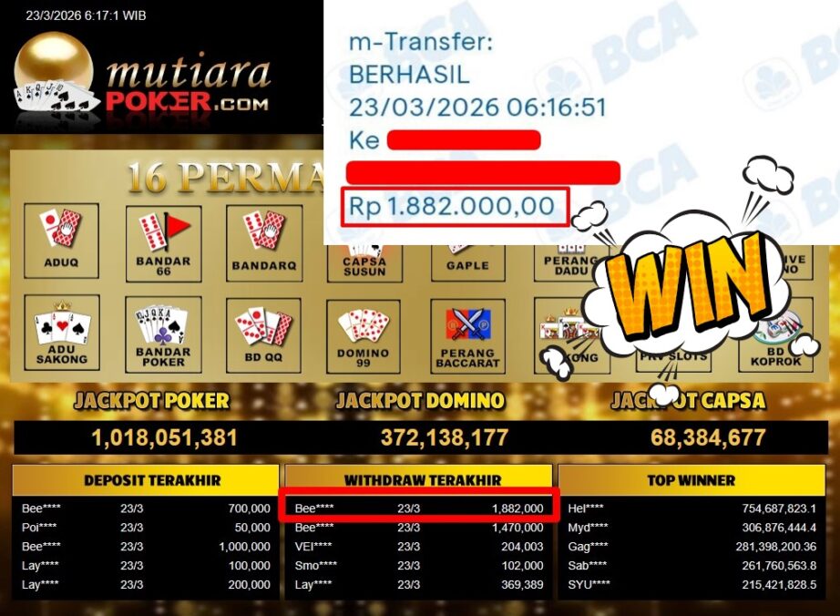 Bukti Withdraw MutiaraPoker