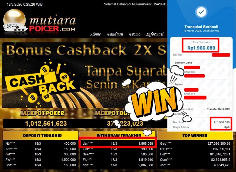 Bukti Withdraw ( 1.966.089,-) Member Setia Mutiarapoker
