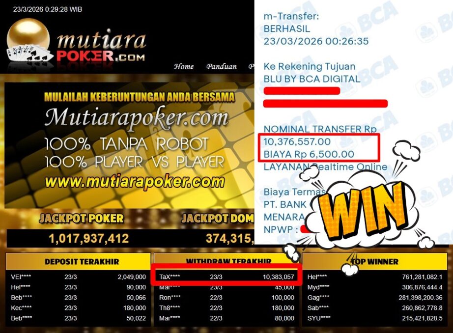 Bukti Withdraw ( 10.383.057,-) Member Setia Mutiarapoker