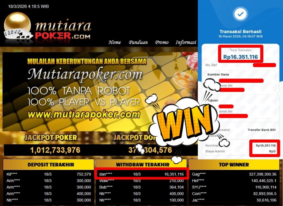Bukti Withdraw ( 16.351.116,-) Member Setia Mutiarapoker