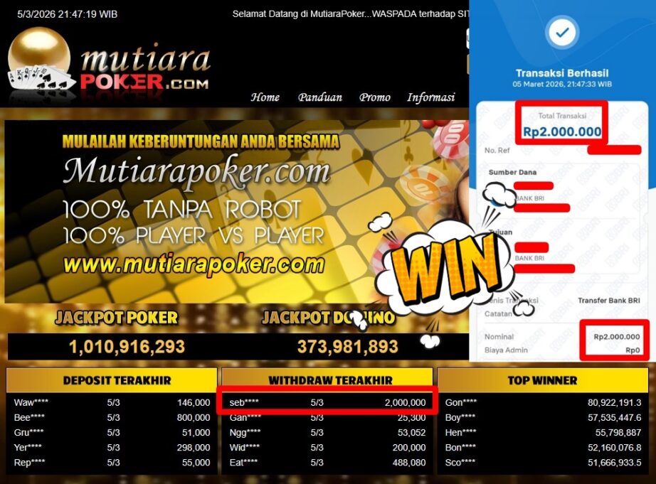 Bukti Withdraw MutiaraPoker