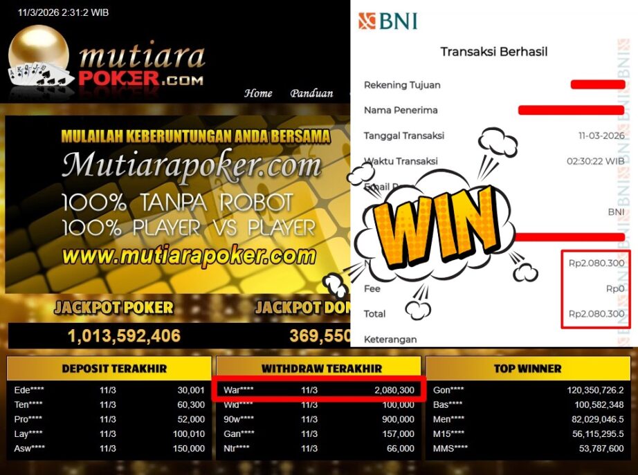 Bukti Withdraw MutiaraPoker