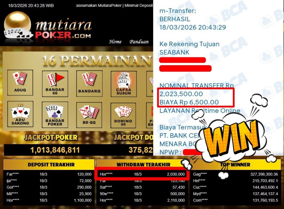 Bukti Withdraw MutiaraPoker