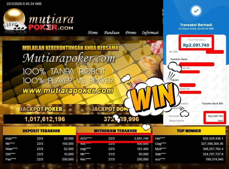 Bukti Withdraw MutiaraPoker