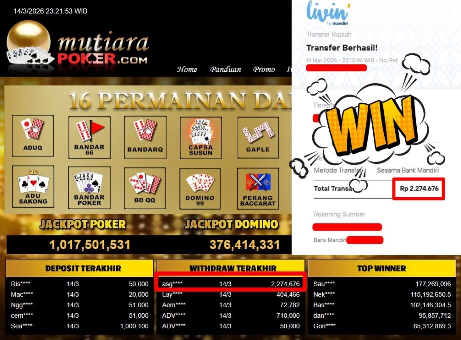 Bukti Withdraw MutiaraPoker