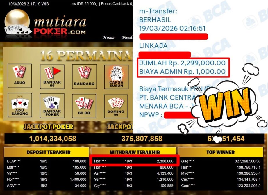 Bukti Withdraw MutiaraPoker