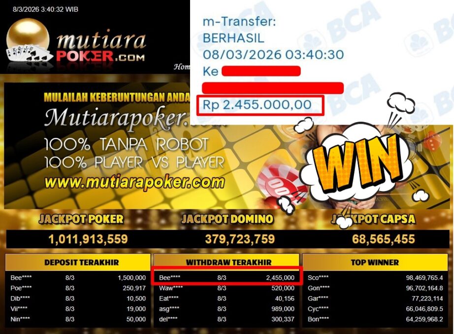 Bukti Withdraw ( 2.455.000,-) Member Setia Mutiarapoker