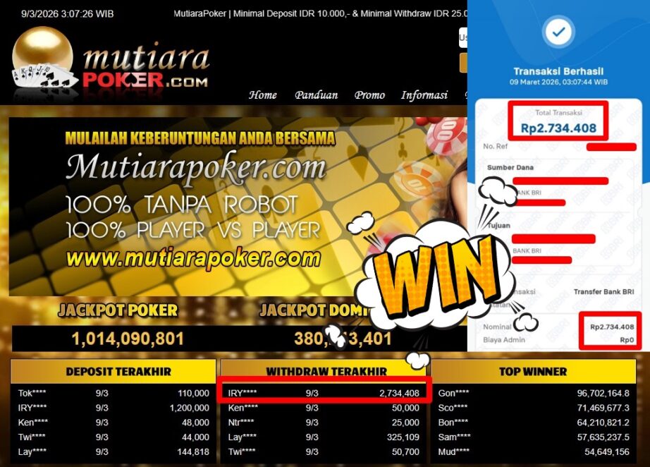 Bukti Withdraw ( 2.734.408,-) Member Setia Mutiarapoker