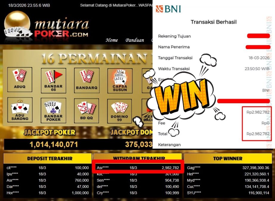 Bukti Withdraw MutiaraPoker
