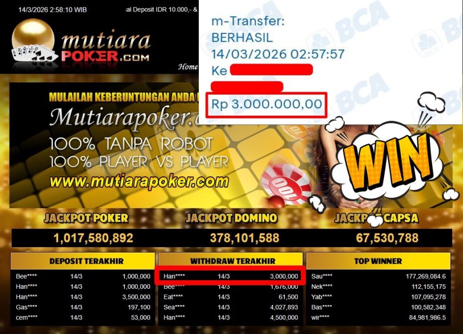Bukti Withdraw ( 3.000.000,-) Member Setia Mutiarapoker
