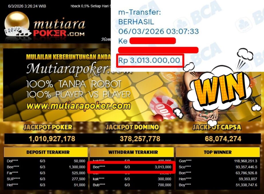 Bukti Withdraw ( 3.013.000,-) Member Setia Mutiarapoker