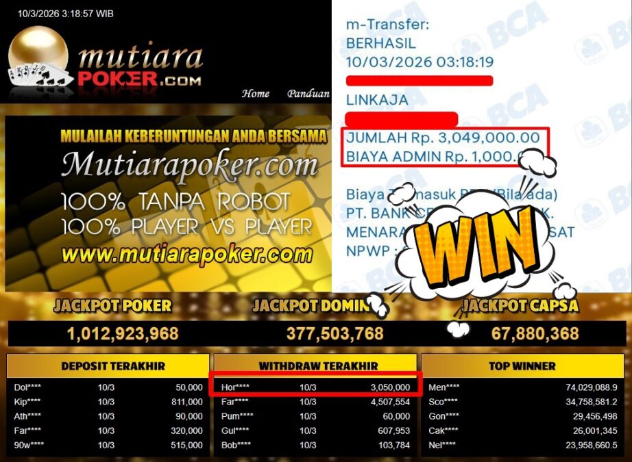 Bukti Withdraw MutiaraPoker