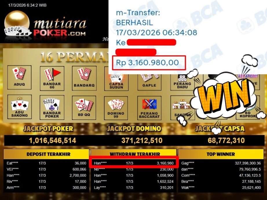 Bukti Withdraw MutiaraPoker