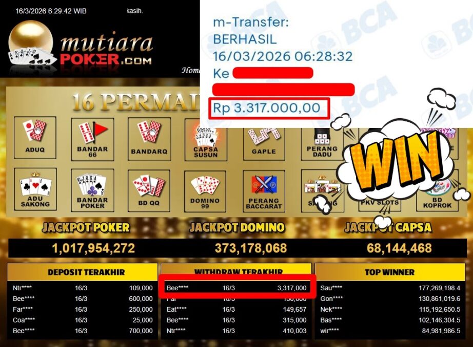 Bukti Withdraw ( 3.317.000,-) Member Setia Mutiarapoker