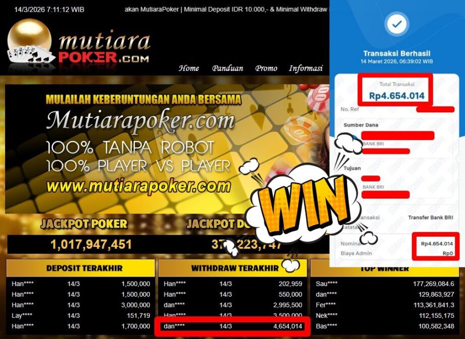 Bukti Withdraw MutiaraPoker