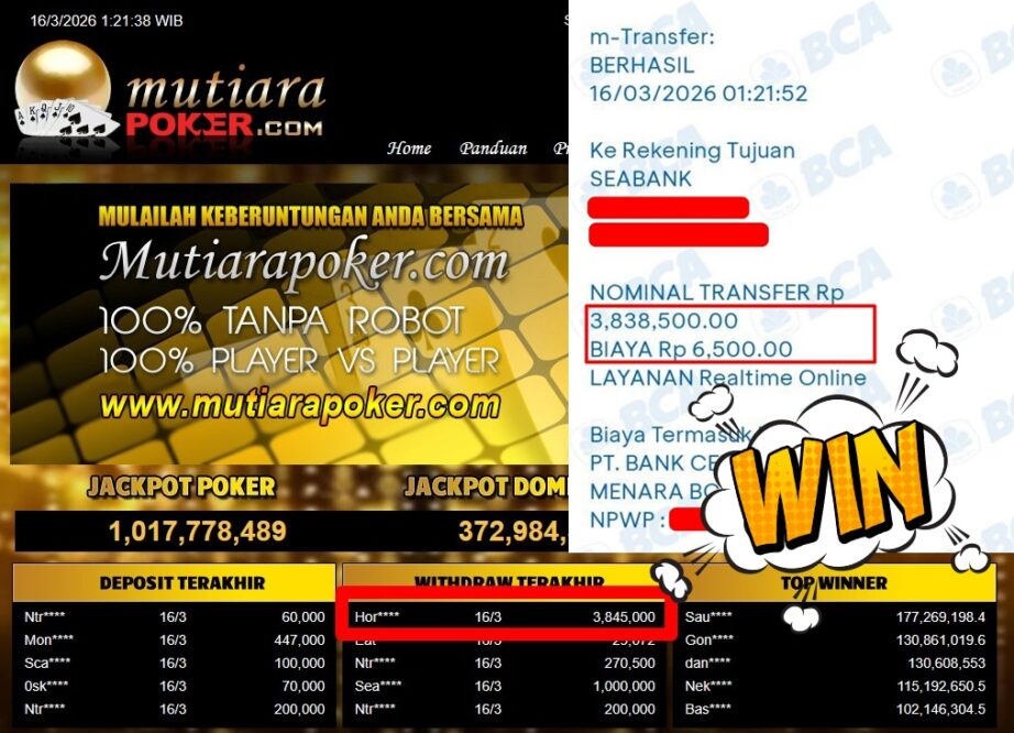 Bukti Withdraw MutiaraPoker