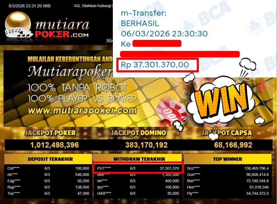 Bukti Withdraw ( 37.301.370,-) Member Setia Mutiarapoker