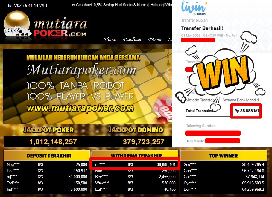 Bukti Withdraw ( 38.888.161,-) Member Setia Mutiarapoker