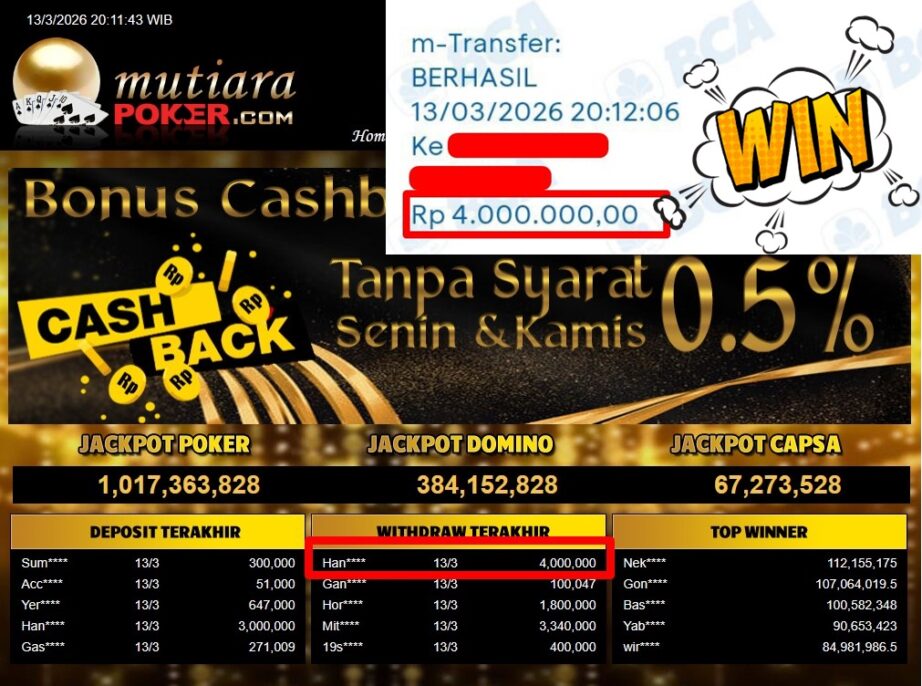 Bukti Withdraw MutiaraPoker