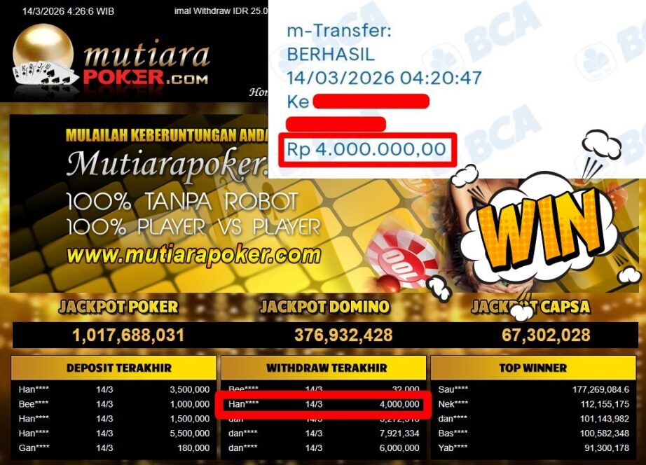 Bukti Withdraw ( 4.000.000,-) Member Setia Mutiarapoker