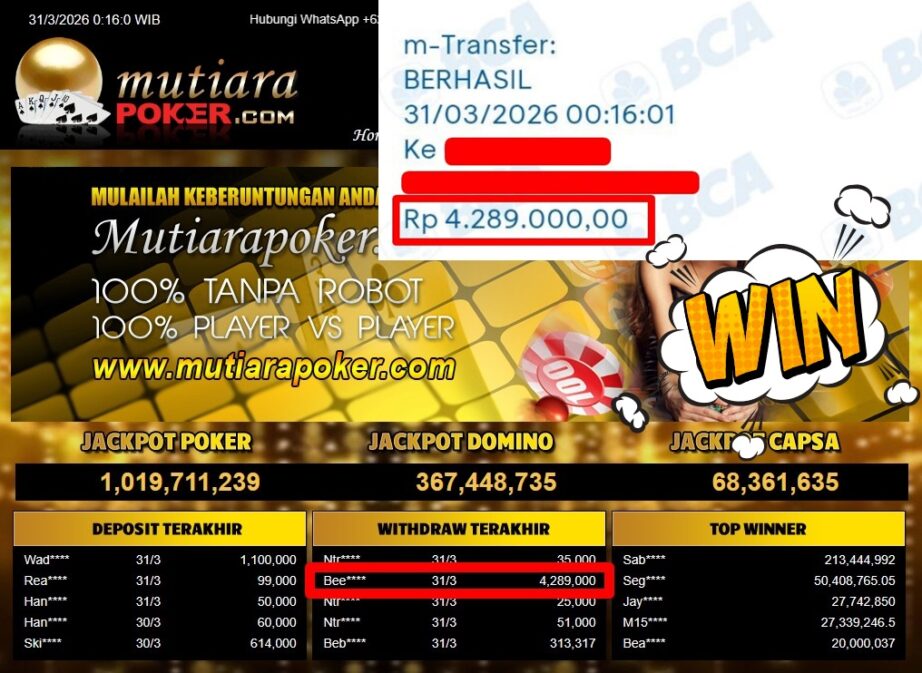 Bukti Withdraw MutiaraPoker