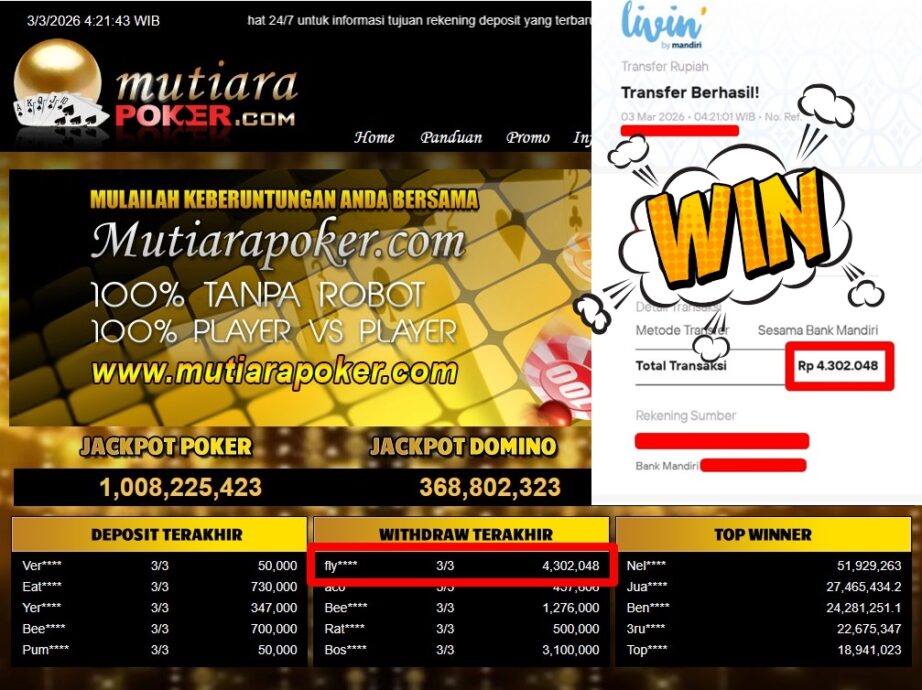 Bukti Withdraw ( 4.302.048,-) Member Setia Mutiarapoker
