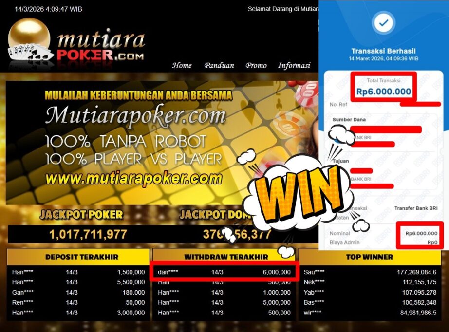 Bukti Withdraw ( 6.000.000,-) Member Setia Mutiarapoker