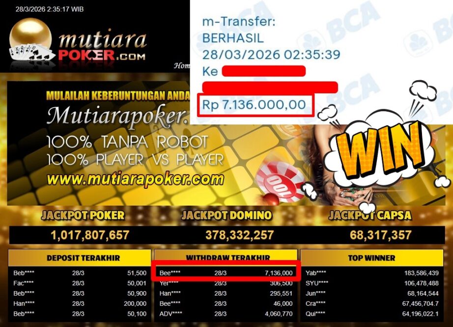 • Bukti Withdraw ( 7.136.000,-) Member Setia Mutiarapoker