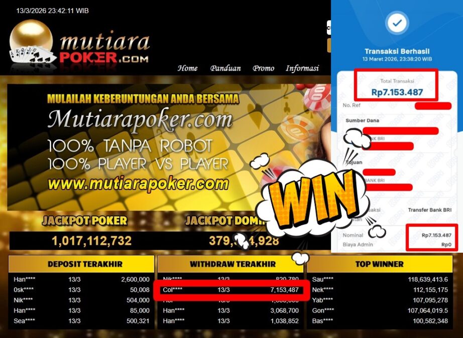 Bukti Withdraw ( 7.153.487,-) Member Setia Mutiarapoker