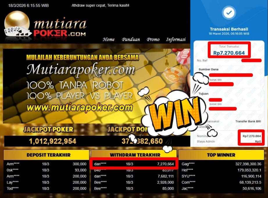 Bukti Withdraw MutiaraPoker