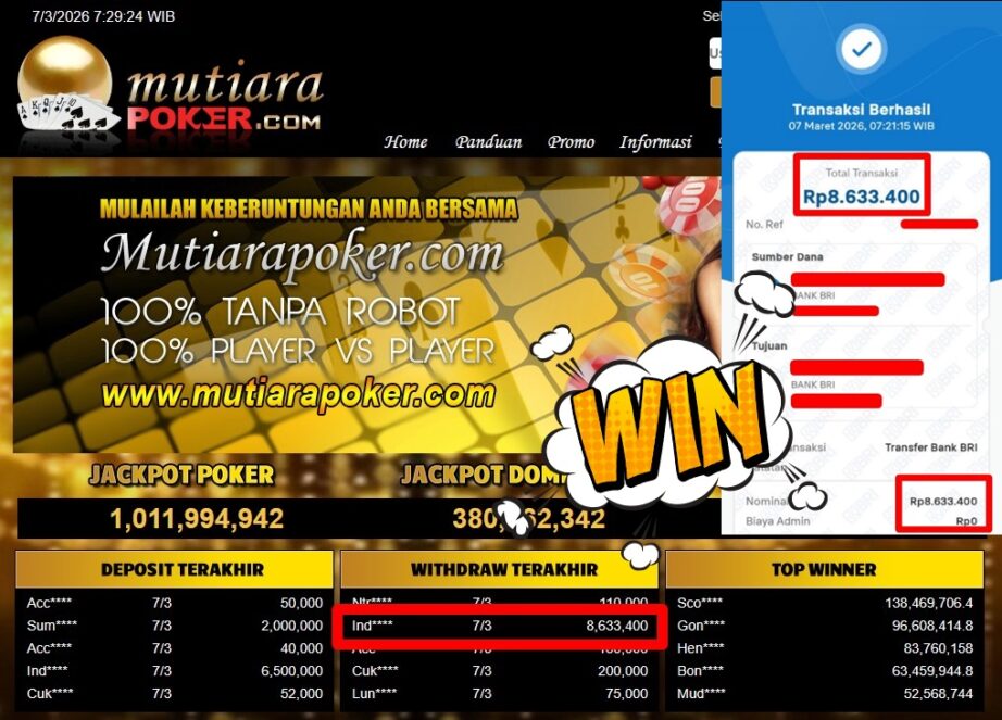 Bukti Withdraw MutiaraPoker