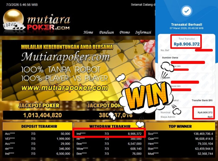 Bukti Withdraw MutiaraPoker