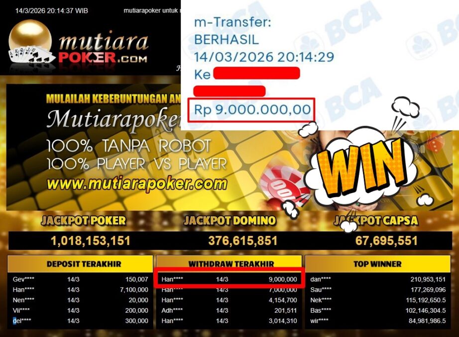Bukti Withdraw ( 9.000.000,-) Member Setia Mutiarapoker