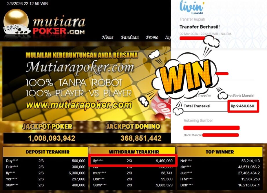Bukti Withdraw MutiaraPoker